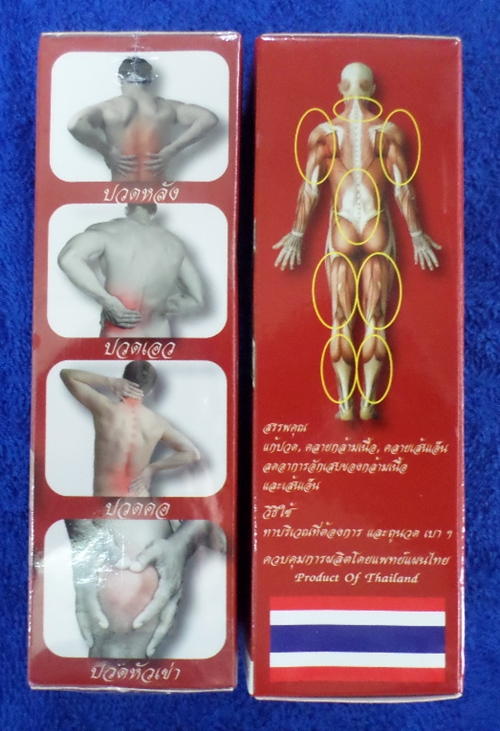 สรรพคุณ แก้ปวด คลายกล้ามเนื้อ คลายเส้นเอ็น ลดการอักเสบของกล้ามเนื้อและเส้นเอ็น ทาบริเวณที่ต้องการ และถูนวดเบาๆ