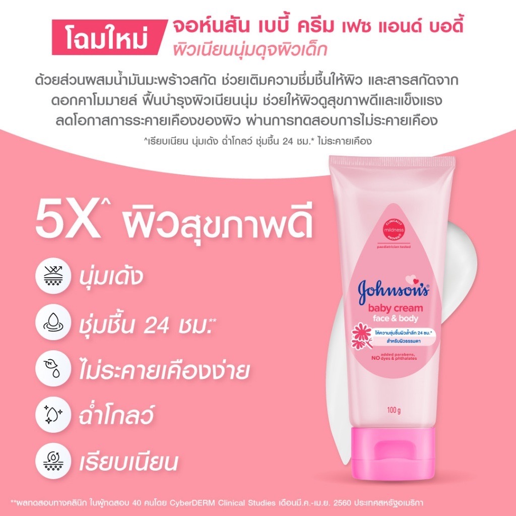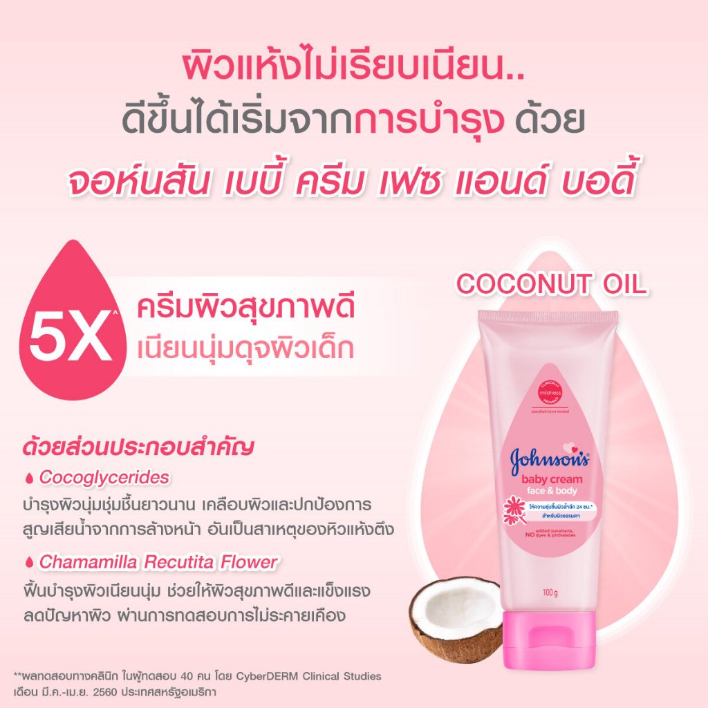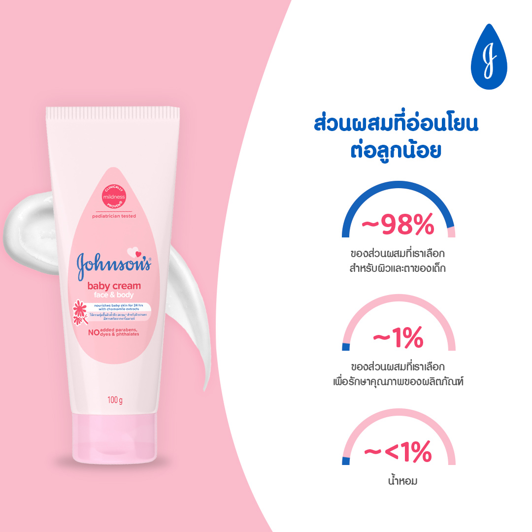 จอห์นสัน เบบี้ ครีม ที่ให้ความชุ่มชื่นเข้มข้นยาวนาน 24 ชั่วโมง เราใส่ใจและดูแลลูกน้อยมายาวนานกว่า 125 ปี
